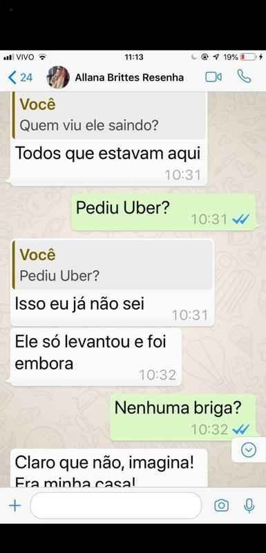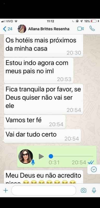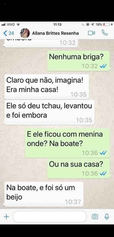 Conversas de Allana Brittes com a mãe do meia Daniel por Whatsapp