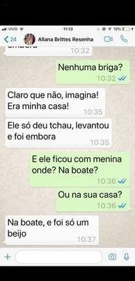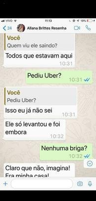 Na segunda-feira (29/10), Allana mandou mensagens para mãe de Daniel, pedindo informações sobre o enterro do rapaz. Ela queria saber se a cerimônia aconteceria em Curitiba. Quem responde é a tia do jogador. Ao ser questionada sobre a saída do Daniel da casa dela, Allana diz que ele deixou o local por volta das 8h. Ela disse, ainda, que "ele só deu tchau, levantou e foi embora". Quando indagada se houve alguma briga na casa, para onde foram cerca de 11 pessoas após a comemoração de seu aniversário, em uma casa de festas, a jovem nega. "Claro que não, imagina! Era minha casa", responde.